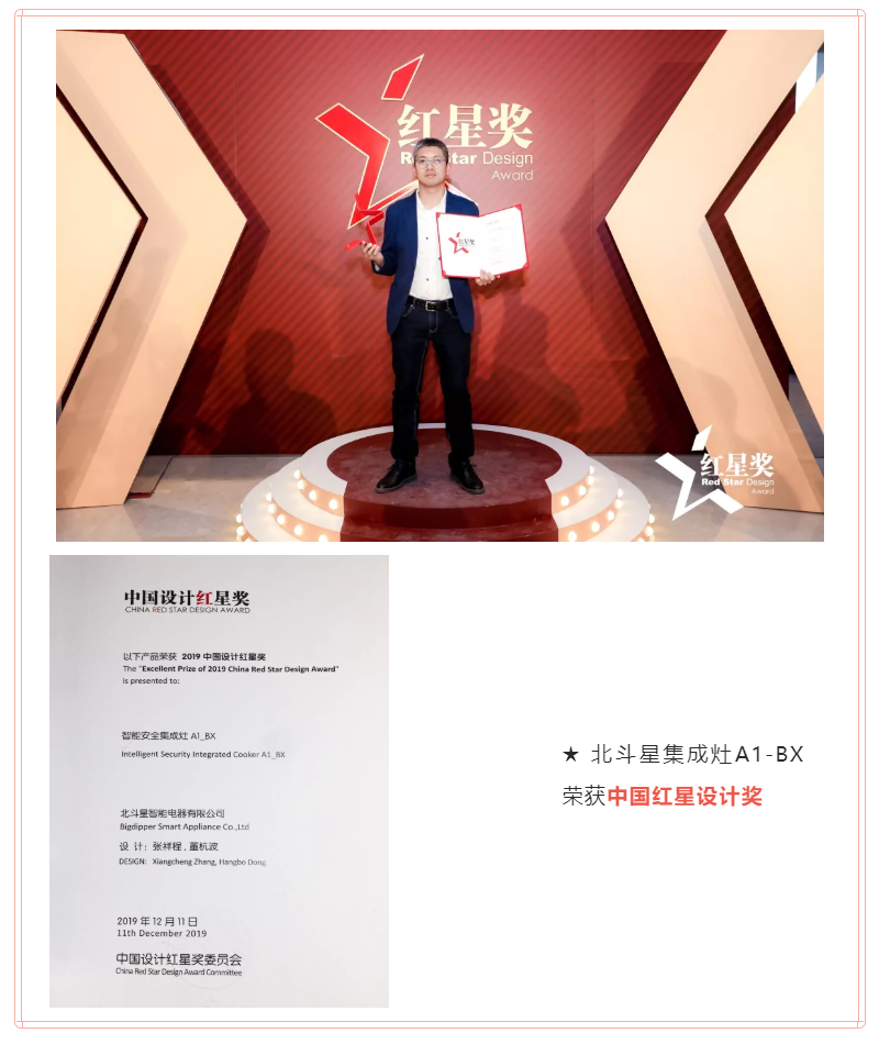 2019年12月11日,歷來(lái)有中國(guó)設(shè)計(jì)領(lǐng)域“奧斯卡”之稱的中國(guó)設(shè)計(jì)紅星獎(jiǎng)在京舉行頒獎(jiǎng)典禮。北斗星集成灶憑借精工作品A1-BX,榮獲2019中國(guó)紅星設(shè)計(jì)獎(jiǎng),并出席了頒獎(jiǎng)典禮。