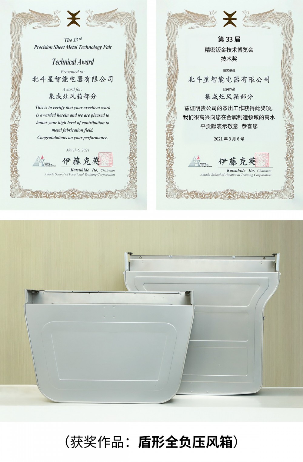近日,歷經(jīng)嚴(yán)格審核,北斗星集成灶精工鈑金制品“盾形全負(fù)壓風(fēng)箱”順利通過第33屆國際精密鈑金技術(shù)博覽會專業(yè)評審,繼2019年北斗星首創(chuàng)天一無縫專利“一體無縫面板”之后,再次獲得“優(yōu)秀鈑金技術(shù)獎”,成為行業(yè)內(nèi)唯一獲此殊榮的企業(yè)。