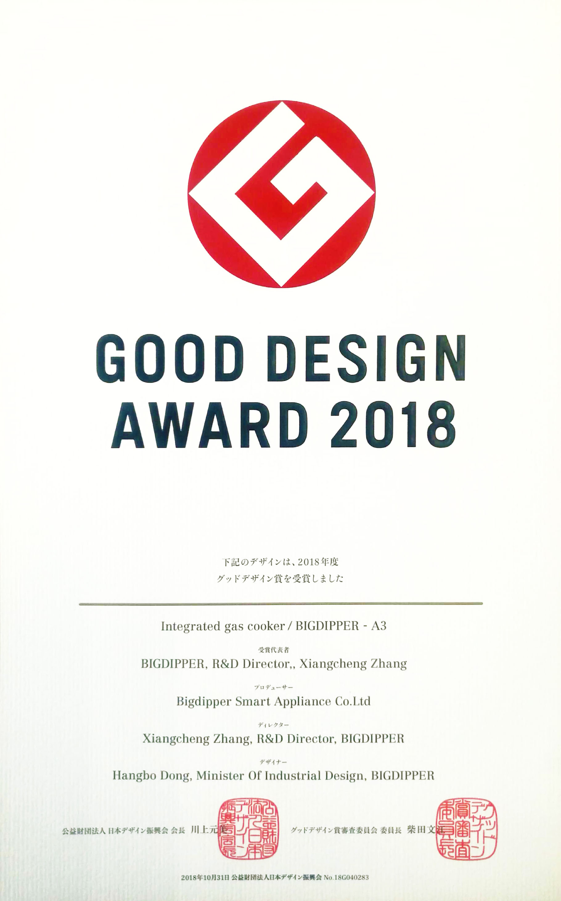 北斗星榮獲全球四大工業(yè)設(shè)計獎項之一的國際“G-Mark設(shè)計獎”,成為集成灶行業(yè)首個獲此殊榮的品牌,G-Mark素有“東方設(shè)計奧斯卡獎”之稱。