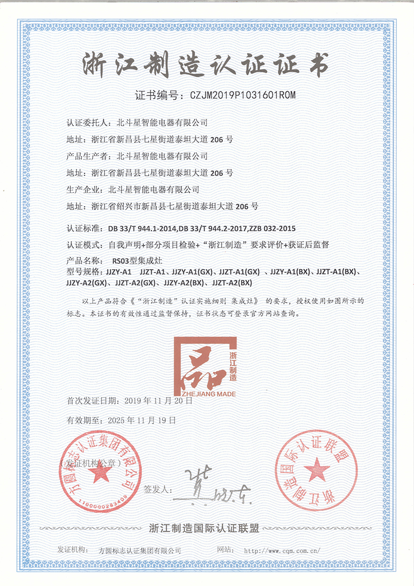 北斗星以優(yōu)質(zhì)的精工產(chǎn)品榮獲了“品字標(biāo)浙江制造”。“品字標(biāo)浙江制造”是浙江制造業(yè)先進性的區(qū)域公共品牌。有資格在自家產(chǎn)品上貼品字標(biāo)的企業(yè),稱得上是浙江制造業(yè)的“標(biāo)桿”和“領(lǐng)導(dǎo)者”,代表了所在行業(yè)的最高質(zhì)量水平,是高品質(zhì)高水平的“代名詞”。