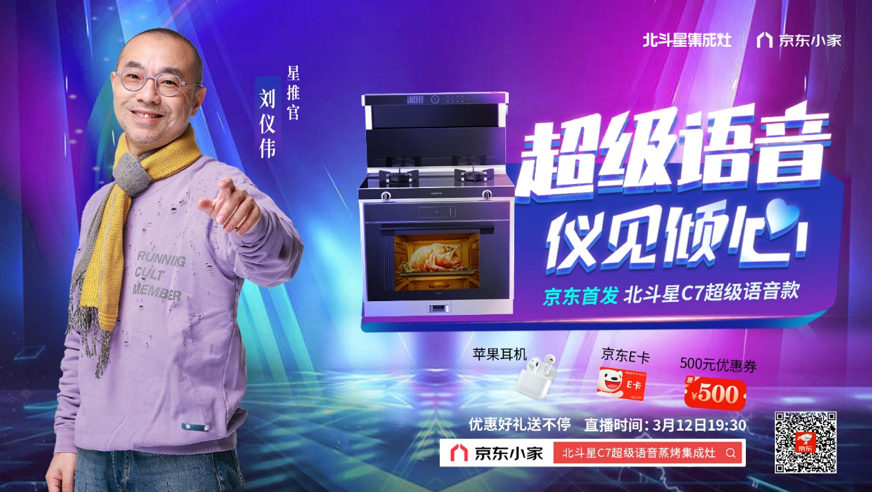3月12日晚20:00,在美麗的海濱城市-山東日照,北斗星集成灶攜手京東商城開啟“超級語音 儀見傾心”新品發布會,國民美食主持人劉儀偉現場助陣。抖音、新浪微博、中關村在線、齊家網等10大平臺在線同步見證。