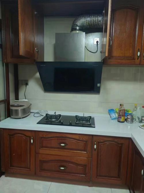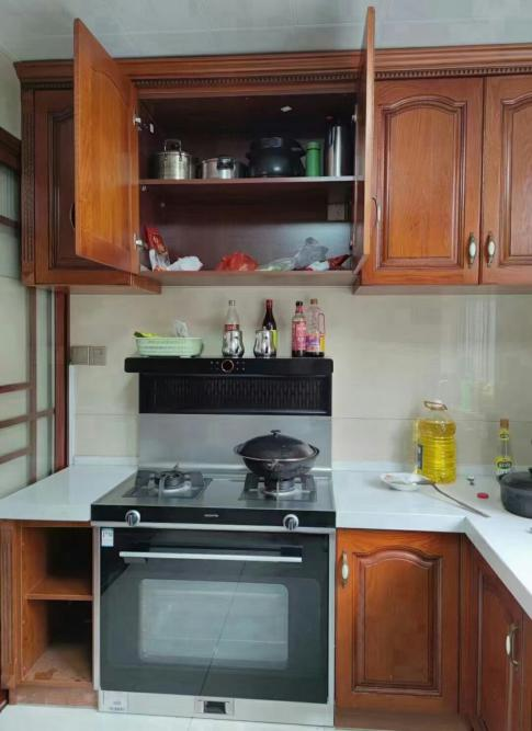 很直觀的對比,拆掉原來的油煙機換上北斗星集成灶,可以騰出上方的柜子多放些東西,廚房看起里更整齊漂亮了。