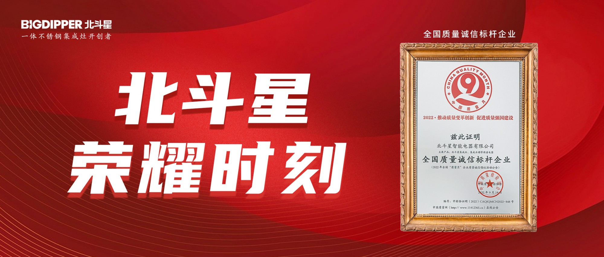 此次北斗星入選 2022 年度中國質(zhì)量月 " 全國質(zhì)量誠信標桿 " ,是中國質(zhì)量檢驗協(xié)會對北斗星集成灶產(chǎn)品和服務(wù)的高度認可。