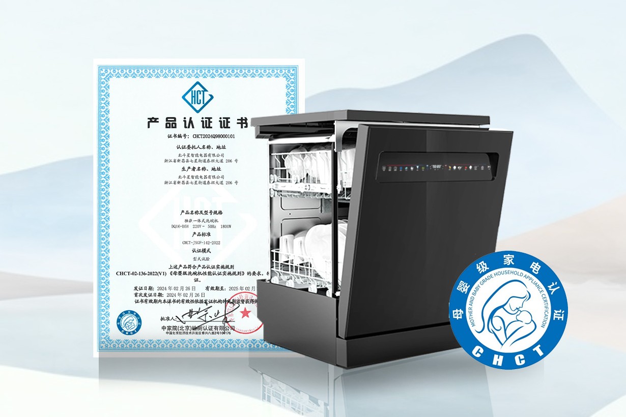 該認證是目前行業內母嬰級洗碗機的權威認證,從根本上實現了母嬰概念產品的考核評價體系。北斗星洗碗機D5在中家院(北京)檢測認證有限公司(中國家用電器檢測所)健康家電檢測中心,依據CHCT-JSGF-142-2022《母嬰級洗碗機性能評價技術規范》進行了母嬰洗凈指數、母嬰干燥指數、漂洗率、除菌率、除病毒率、噪聲項目的檢測并符合CHCT-02-136-2022(V1)《母嬰級洗碗機性能認證實施規則》中的規定,取得產品認證證書。