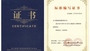 北斗星公司憑強大的制造實力、卓越的研發能力、良好的品牌口碑等行業領先優勢,榮獲“T/ZRC 04-2018《集成灶》團體標準起草單位”資質。