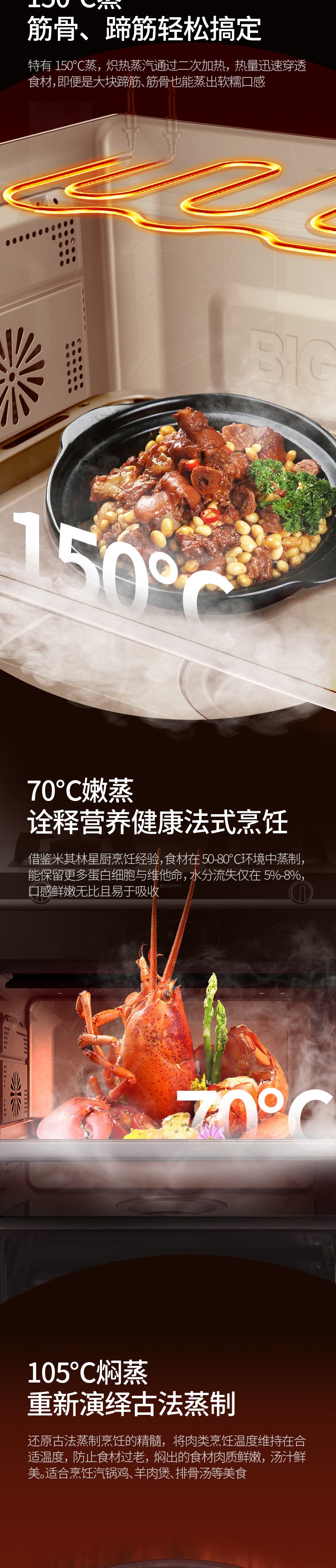 150℃高溫蒸、低溫嫩蒸、燜蒸、速蒸、輕烘烤